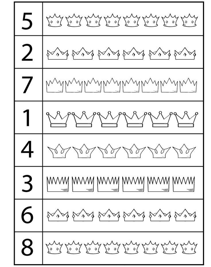 Zkus podle čísel vybarvit počet královských korun..