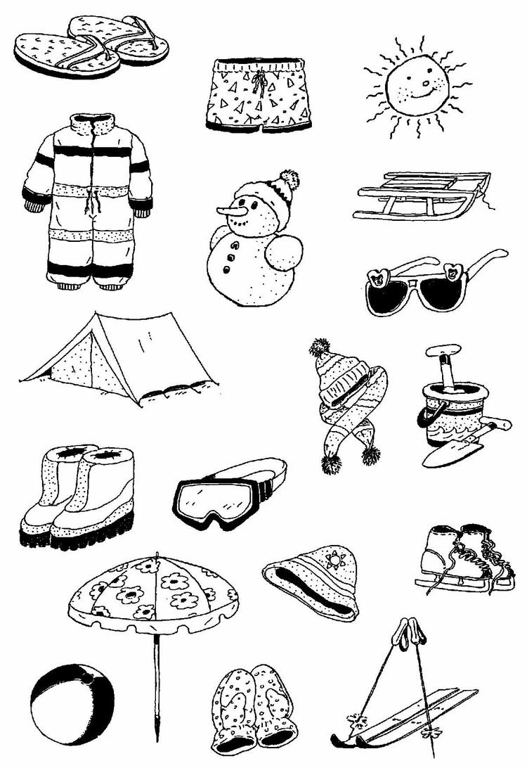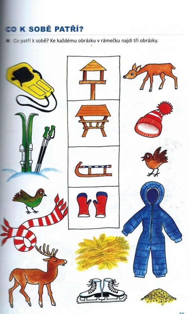 Zakroužkuj a vybarvi jen věci, které potřebujeme v zimě.