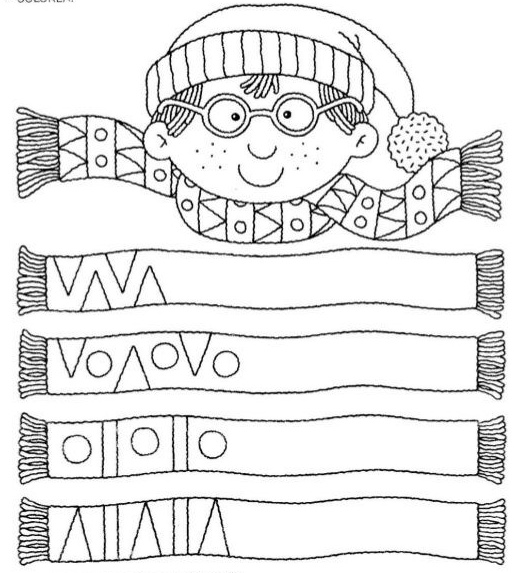 Dopiš dle předlohy vzory na šály a pak můžeš obrázek vybarvit..