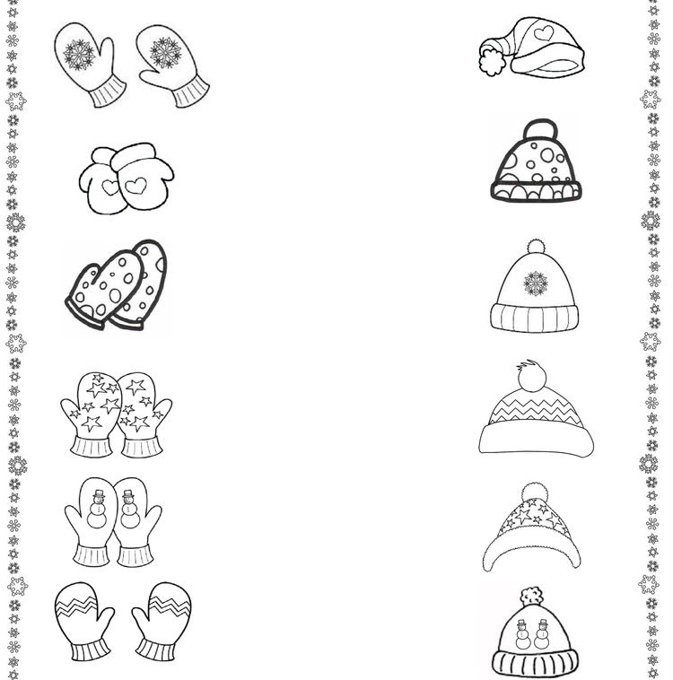 Spoj čarou rukavice, které patří k čepici..