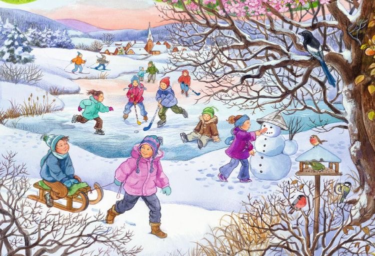 Vyprávěj o všem, co vidíš na obrázku, co můžeme dělat v zimě..