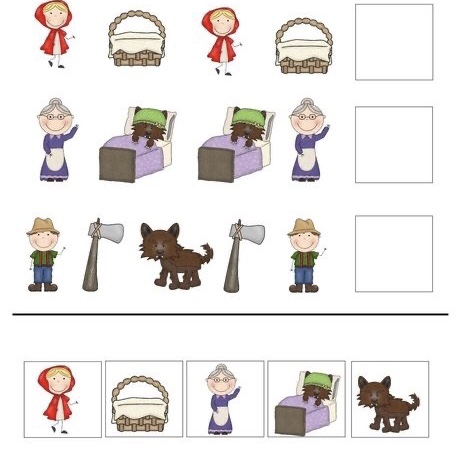 Vystřihni obrázky v dolní části a nalep ten správný, který je na řadě do vyznačených políček.